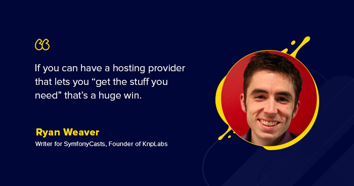 Ryan: For me, anything that adds some “easy” to my infrastructure is a win. I’ve done a lot of stuff on AWS. It’s, of course, powerful. But it’s painful to connect the pieces. Then, when I come back 1 year later, I can’t remember what anything means. If you can have a hosting provider that lets you “get the stuff you need” (server, web server, cache, database, etc), that’s a huge win.