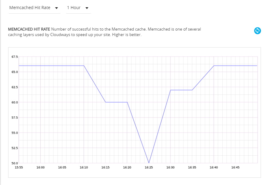 On Cloudways, you can easily look up the hit rate of Memcached by going to the server and then choosing Monitoring from the sidebar.