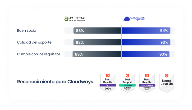 ¿Cloudways o A2 Hosting? No hay color. Cloudways te ofrece más velocidad, control y soporte experto en el momento que lo necesites