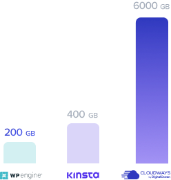 Visits, bandwidth, and storage included in small business-scale plans for WPEngine, Kinsta, and Cloudways. See full details of our test here.